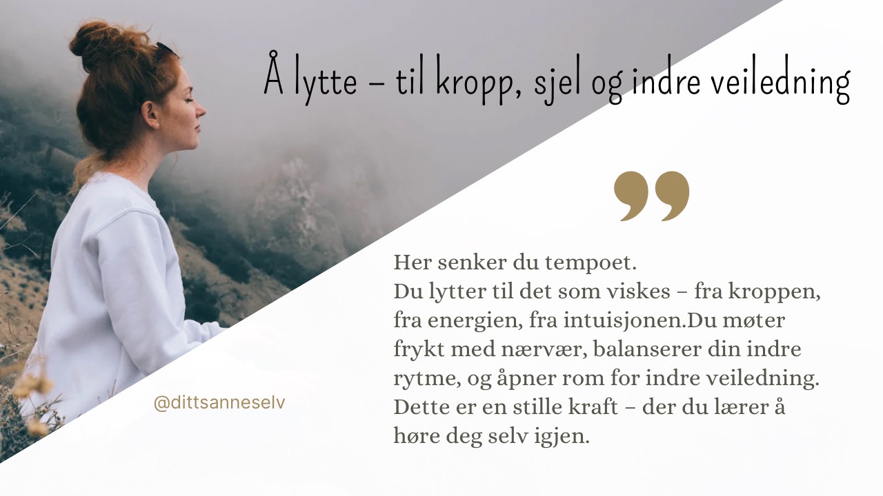 Her lærer du å høre din egen stemme tydeligere. Du åpner rom for stillhet, intuisjon og indre visdom. Det du tidligere overså, blir nå en veiviser.