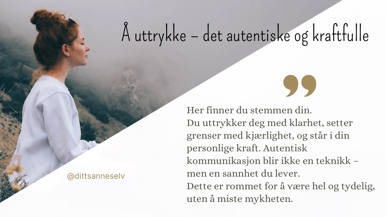 Du får støtte til å lytte innover, uttrykke deg tydeligere og leve mer i tråd med din egen sannhet.