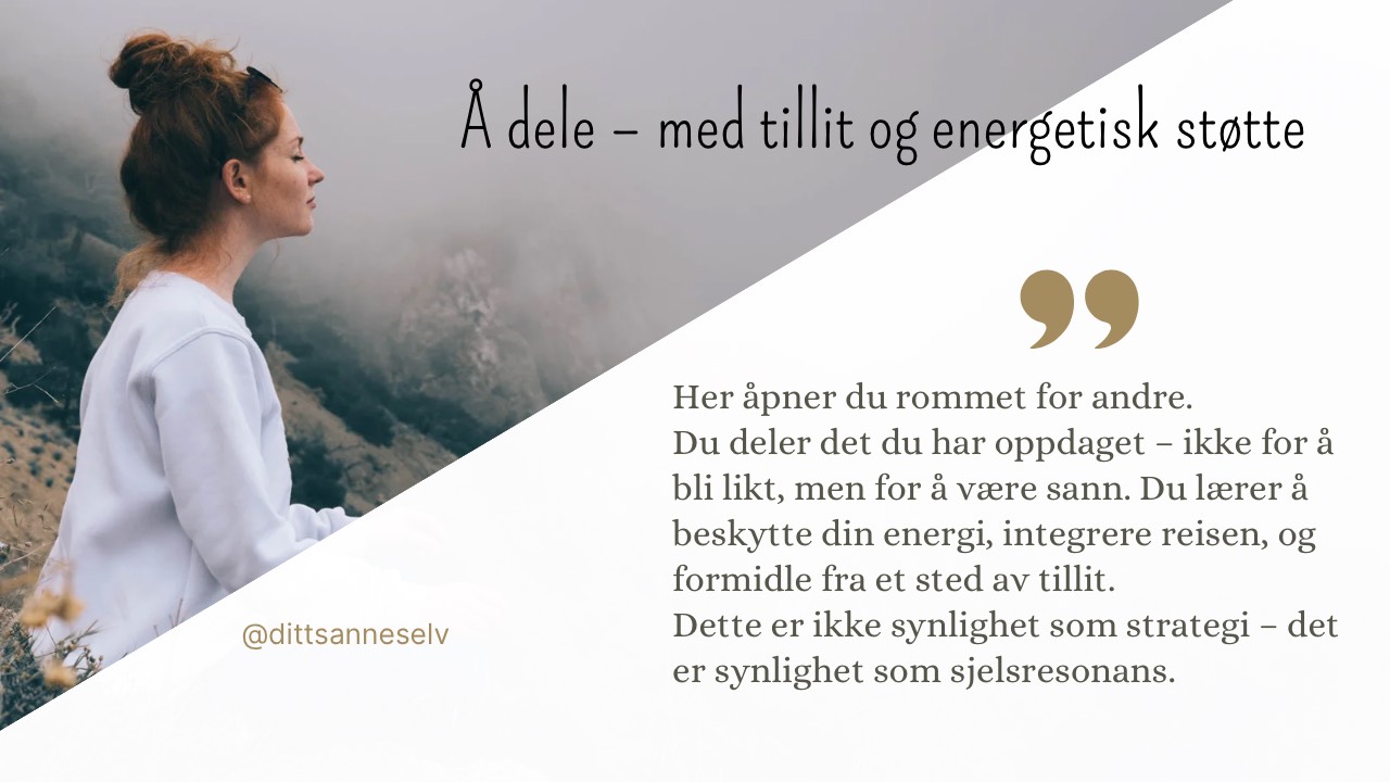Du trer frem med trygghet og nærvær. Det du bærer i deg får lov til å møte verden. Autentisiteten din blir en gave; for deg og andre.